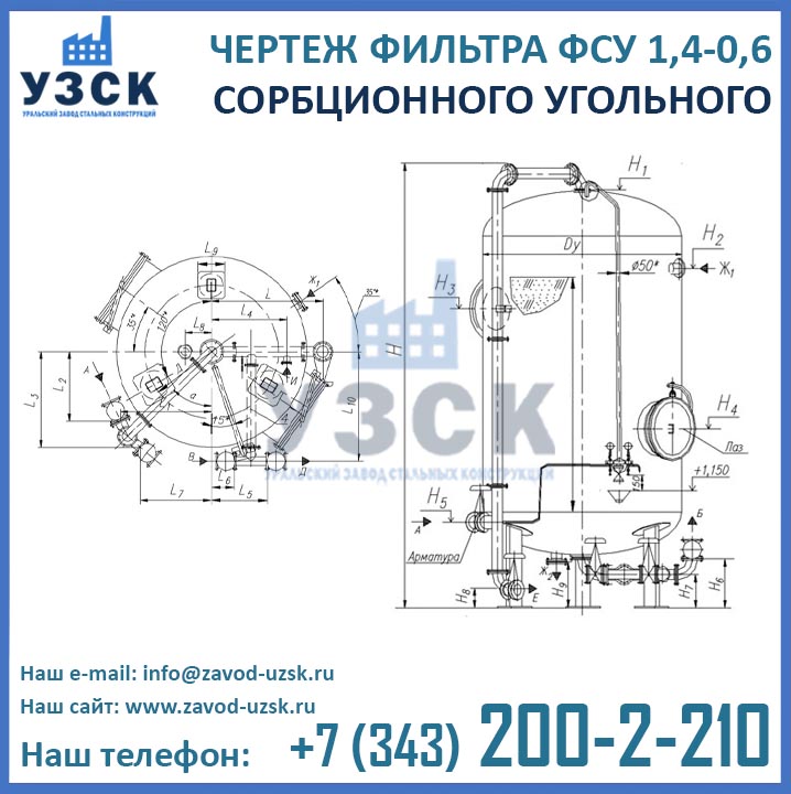 Если вы ищете фильтры ФСУ-1,4-0,6 в Семее от изготовителя, то Вы на правильном пути! Уральский завод стальных конструкций – непосредственный производитель сорбционных фильтров ФСУ, предлагающий самые выгодные цены на ФСУ-1.4-0.6 в Семее. По окончании процесса производства угольные фильтры проходят гидравлические испытания пробным давлением 0,9 МПа на аттестованном гидростенде, находящимся в собственности завода УЗСК. Мы гарантируем высокое качество выпускаемой продукции, и в этом уже убедились ведущие предприятия промышленного сектора России и стран ЕАЭС (см. раздел «Наши клиенты»).