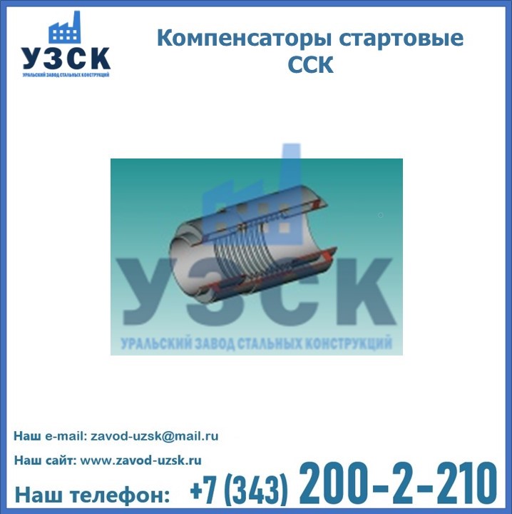 Стартовый компенсатор ССК — это устройство, конструкция которого схожа с осевым сильфонным компенсатором, но предназначенного для первоначального запуска трубопроводной системы. ССК состоит из сильфона (стальной гофры), изготовленного из многослойной нержавеющей стали. Сильфон нужен для компенсации осевых смещений и удлинения трубопроводов, возникающих при заполнении трубы потоками рабочей среды с высокой температурой. Также, в конструкцию изделия включен защитный стальной кожух, который, после запуска системы и сужения гофры сильфона, сваривается. Кожух нужен для защиты внешней части сильфона.